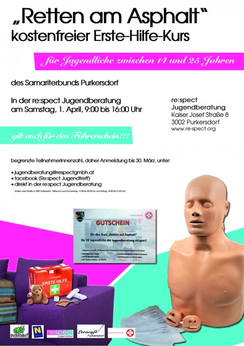 Der Kurs wurde zur Eröffnung der neuen re:aspect Beratungseinrichtung vom Samariterbund Purkersdorf und der Stadtgemeinde Purkersdorf geschenkt!